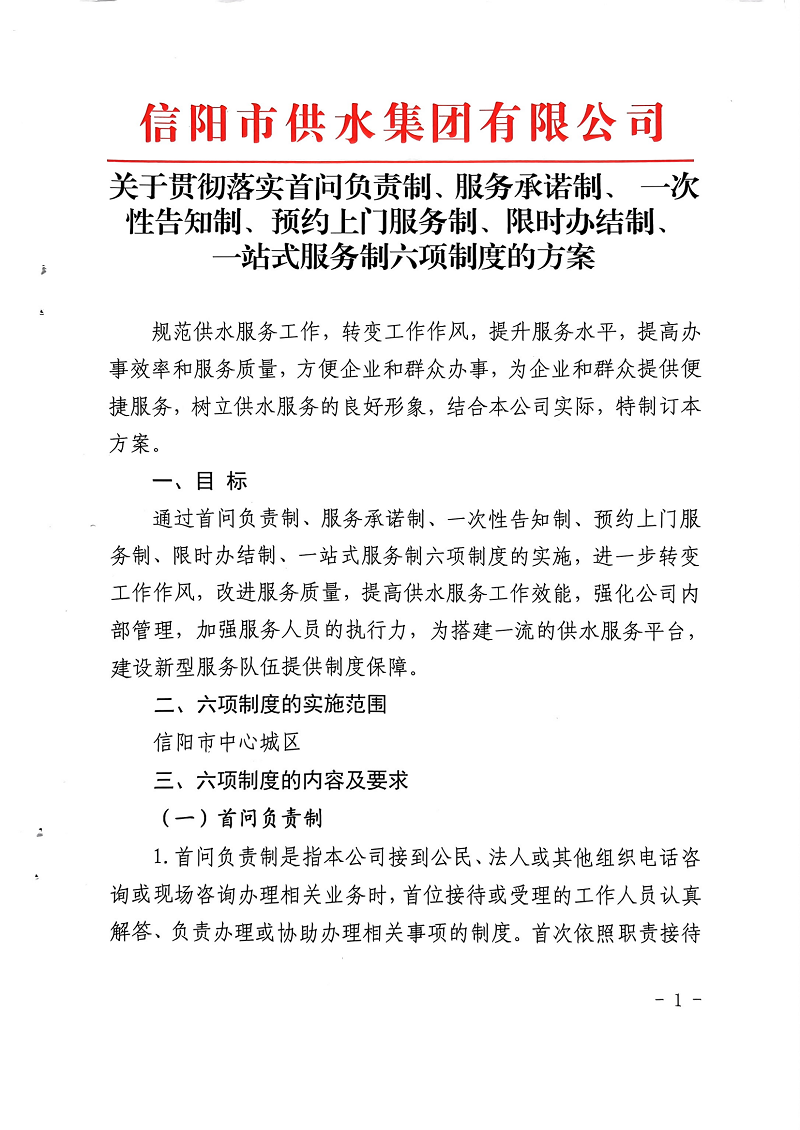 關于貫徹落實首問負責制、服務承諾制、一次性告知制、預約上門服務制、限時辦結(jié)制、一站式服務制六項制度的方案